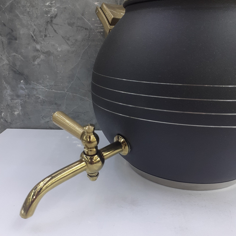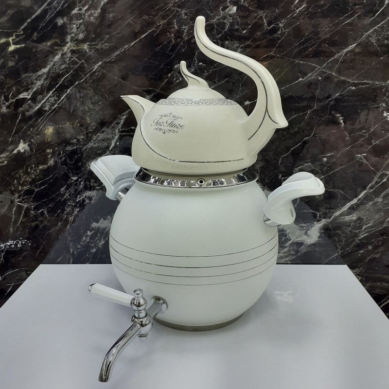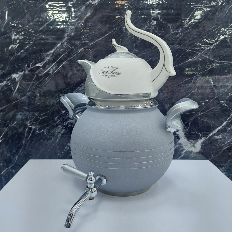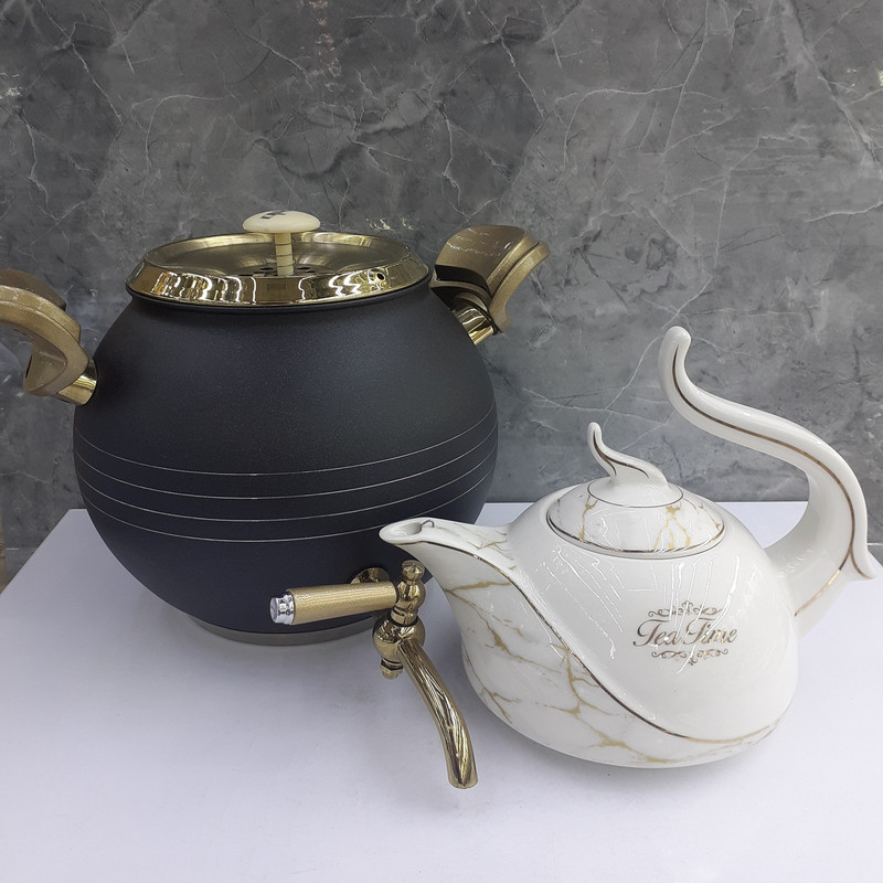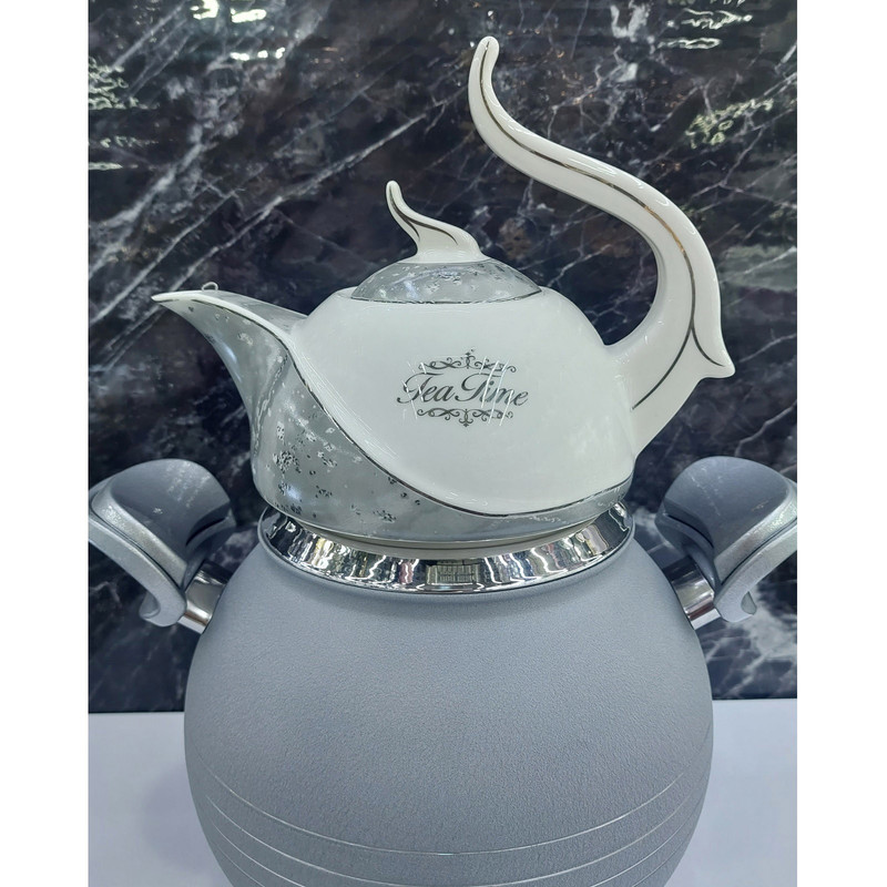 مجموعه کروپ ست این بار برای تامین سلایق مشتریانش دست به ابتکاری جدید زده و کتری های استیل تولیدی خود را در رنگ های متنوعی به بازار عرضه کرده است تا در راستای مشتری مداری و رقابت با دیگر محصولات داخلی و خارجی همچنان یک گام از همه جلوتر باشد. کتری استیل رنگی کروپ ست ساخته شده از استیل ضد زنگ با گرید 304 و ضخامت بدنه 1 میلیمتری می باشد و با طراحی منحصر بفردی که دارد گزینه ای ایدهآل برای آشپزخانه شماست. از مزیت های این محصول دارا بودن قوری بر روی کتری بدلیل طراحی هوشمندانه درب کتری است. همچنین با تعبیه سوپاپ بخار بر روی درب کتری از هدر رفت بخار آب جلوگیری کرده که باعث افزایش بهرهوری انتقال حرارت به قوری می شود. این محصول دارای دستههایی از جنس باکالیت مقاوم به حرارت است. جنس قوری این سرویس، چینی باکیفیت است که طعم چای دلنشینی را برای شما به ارمغان خواهد آورد. از ویژگی های دیگر این محصول می توان به ست بودن رنگ کتری و قوری آن اشاره کرد که می تواند نقش بسزایی در زیبایی نمای آشپزخانه شما داشته باشد. برای انتخاب درست فقط کافیست حضور این کالا را در آشپزخانه خود تجسم کنید. و اما ویژگی بارز کتری های کروپ ست استیل 304 و ضخامت 1 میلمتری آن می باشد که باعث شده مجموعه کروپ ست محصولات رو گازی خود را برای مصرف کننده تا یک سال تضمین کند و این یک سورپرایز به حساب می آید. این حس خوب را میهمان «کروپ ست» باشید.