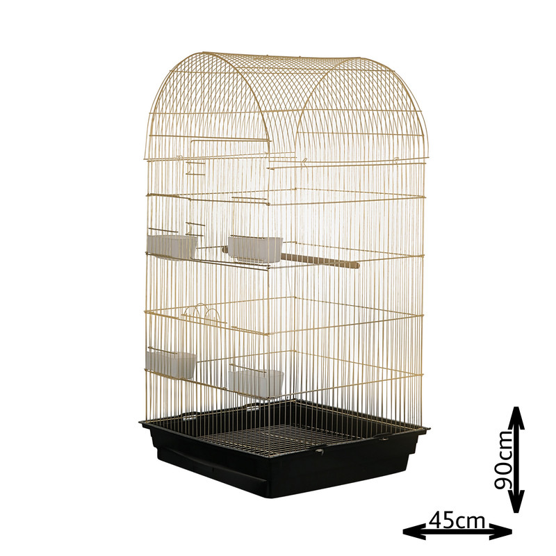 قفس جادار ، بزرگ و کارآمد مناسب برای پرندگان زینتی و انواع طوطی سانان کوچک ، متوسط و بزرگ جثه مانند : طوطی برزیلی ، طوطی عروس هلندی ، شاه طوطی ، طوطی ملنگو ، کاسکو ، گرینچیک ، مرغ عشق ، طوطی سبز ، قناری ، راهب و … ، رنگ های محصول از رنگ کوره ای استاتیک درجه یک و مقاوم و در نوع استیل آن از کروم تولید شده است. دارای کارتن بسته بندی نیز میباشد.