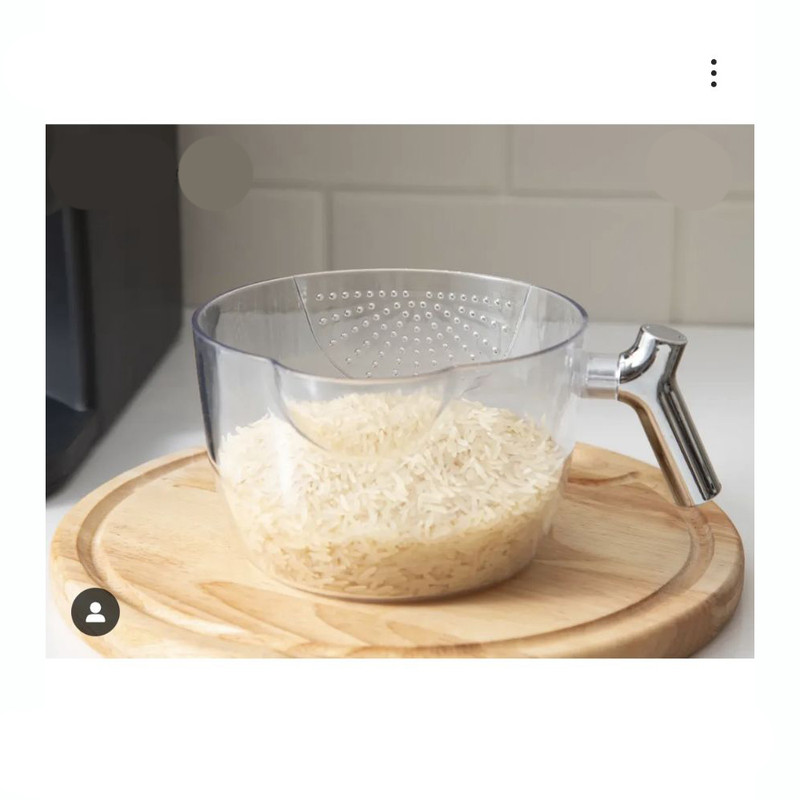 پیمانه شفاف یک دسته دارد که برای جابجایی و شست و شو برنج کار را بسیار راحت کرده است و دیگر نیازی به جابجایی ظرف برای شست و شو برنج نیست.