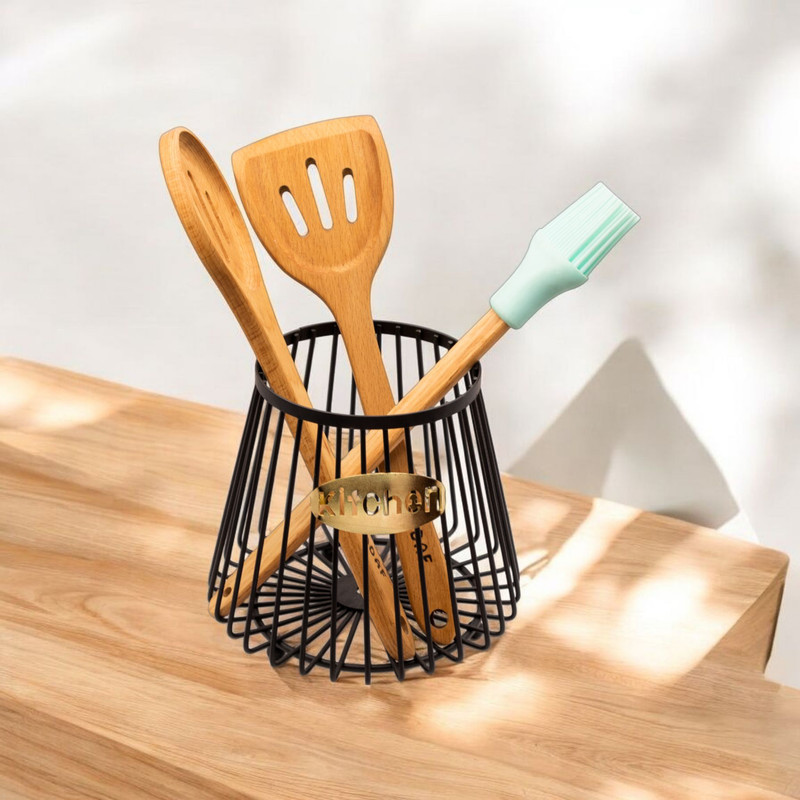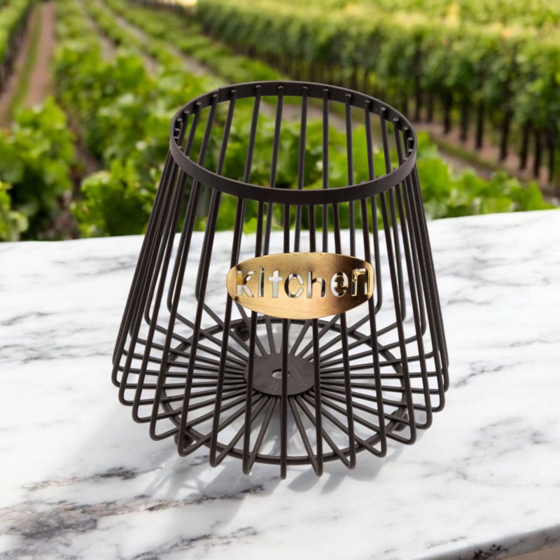 سبد فلزی دکوراتیو مدل Kitchen، یک انتخاب شیک و کاربردی برای دکوراسیون آشپزخانه و محیطهای مدرن است. این محصول با طراحی مشبک و فرم مخروطی، ترکیبی از سبک صنعتی و مینیمال را به نمایش میگذارد و با رنگ مشکی مات و پلاک طلایی با نوشتهی "Kitchen"، جلوهای خاص و چشمنواز ایجاد میکند.