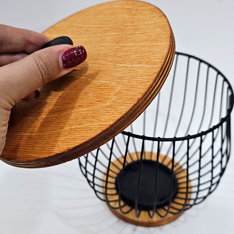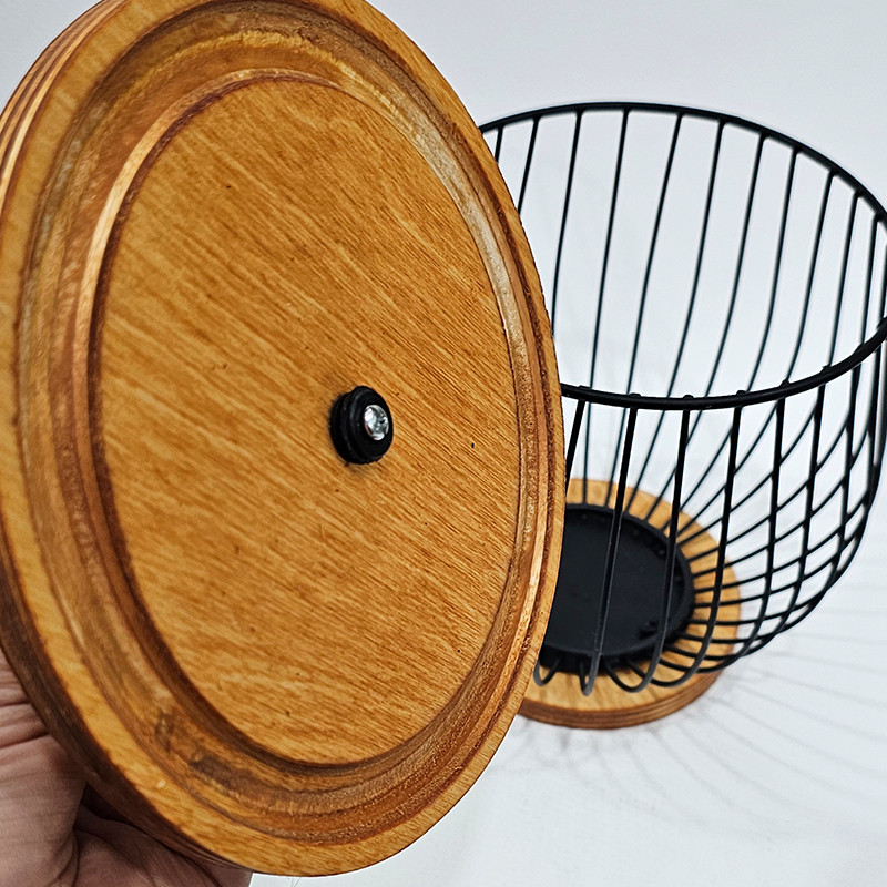 سبد آشپزخانه با طرح بلوط و درب چوبی در عین زیبایی بسیار کاربردی بوده و برای نظم دهی به گردو و بادام با ظاهری شکیل بسیار مناسب است. همچنین از این سبد میتوان به عنوان بانکه کپسولهای قهوه و یا شکلات درشت نیز استفاده نمود. این سبد با طراحی مینیمال و ساده خود، ظاهری بسیار شیک داشته و در کنار کافی بار و یا داخل آشپزخانه زیبایی خاصی ایجاد مینماید.