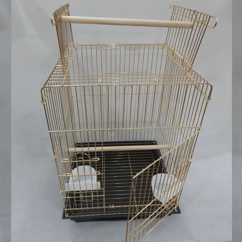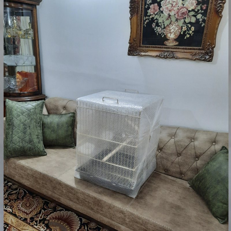 این قفس مونتاژ شده با کاور بسته بندی ارسال میگردد .این قفس مخصوص طوطی و مینا و یک عروس هلندی میباشد سقف این قفس باز میشود ومثل عکس نشیمن بین دو سقف گذاشته وعروس هلندی بیرون قفس روی نشیمن مینشیندا درقفس از روبه رو و هم از بالا باز میشود و کفی کشویی دارد که به راحتی خارج شده و قابل شستشو میباشد این کفی چند زایده دارد که هنگامی که قفس بدست شما رسید انها را بریده تا بتوان کفی را دراورد ونظافت کنید این قفس برای پرنده مثل مرغ عشق وفناری وپرنده ریز جثه مناسب نیست چون در قفس بزرگ است وپرنده فرار میکند.ابعاد قفس 42 در36 وارتفاع 55 سانت است قفس تاشو وهر زمان نیاز نداشتید تا میشود وجا گیر نیست وملاک رنگ کفی قفس میباشد