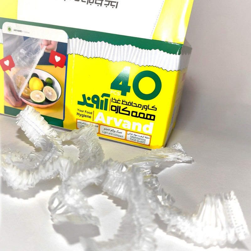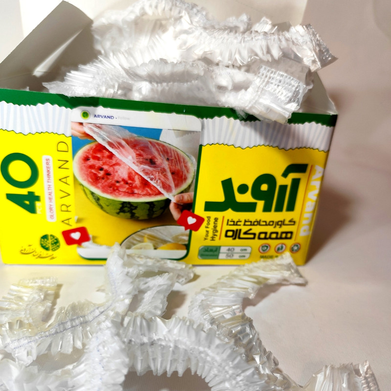 کاور محافظ غذای آروند محصولی با کاربرد فرآوان و تهیه شده از مواد اولیه با کیفیت بسیار عالی با دستگاههای پیشرفته بهداشتی و مدرن روز میباشد .این محصول سایز لارج به قطر 40 سانت بوده و برای پوشش درب ظروف غذا و میوه و سبزیجات استفاده میگردد .هر جعبه محتوی 40 عدد درپوش یکبار مصرف کشدار سایز لارج با کیفیت بسیار بالا می باشد .این محصول هم از نظر سایز و هم مرغوبیت جنس نایلون و کش استفاده شده عالی بوده و قابل مقایسه با محصولات چینی مشابه به هیج عنوان نمیباشد و رضایت شما خریداران را جلب خواهد نمود .