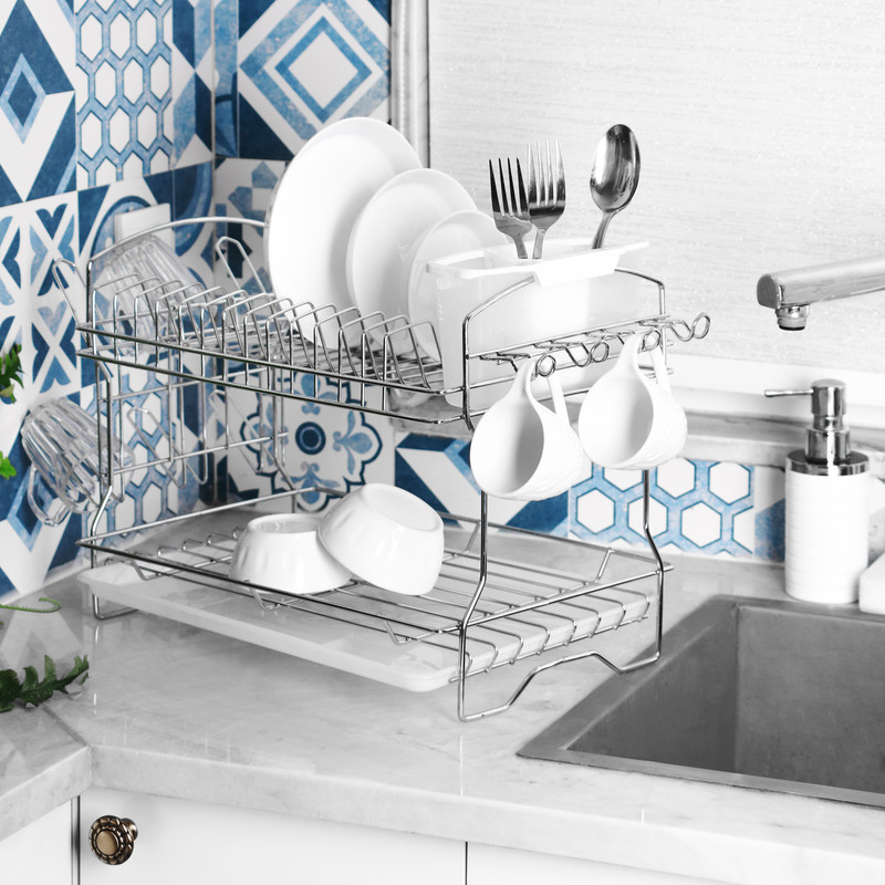 جاظرفی دو طبقه متوسط رز محصول تولیدی گروه صنعتی عادل با فضای استانداردی که دارد به شما این امکان را می دهد که ظروف را پس از شستشو روی آن قرار داده تا خشک شوند. این محصول طراحی زیبایی داشته و امکانات فراوانی را در اختیار شما قرار می دهد.جنس محصول فلزی با استحکام بالاست و در دو نوع آبکاری استیل و روکش پی وی سی تولید و عرضه گردیده است نوع اول زیبایی و نوع دوم آن استحکام بالاتری دارد .شما در داخل این جا ظرفی میتوانید بشقاب و دیگر ظروف را قرار دهید. همچنین جای قرارگیری لیوان ,فنجان ,قاشق و چنگال بر روی این جاظرفی تعبیه شده است و به شما این امکان را میدهد هر کدام را به تفکیک روی آن قرار دهید. همچنین در طبقه بالای آن شما می توانید کاسه و ظروف کوچک را جا داده تا خشک شوند. سینی این محصول برای خارج شدن آب ها ظرف های شسته شده تعبیه شده است تا آبی جمع نشود.تنوع در مدل و رنگ بندی جاظرفی های این واحد صنعتی به شما این امکان را می دهد تا متناسب با سلیقه و فضای آشپزخانه ی خانه ی خود انتخاب مناسب تری داشته باشید