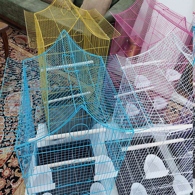 قفس عروس مونتاز شده وبا ضربه گیر کاور شده ارسال میشود قفس با کفه مشکی وبدنه در رنگهای مختلف ارسال میشود وملاک رنگ کفی قفس میباشد قفس جادار ، بزرگ و کارآمد مناسب برای پرندگان زینتی و انواع طوطی سانان کوچک ، متوسط جثه مانند : طوطی برزیلی ، طوطی عروس هلندی ، ، طوطی ملنگو ، ، گرینچیک ، مرغ عشق ، طوطی سبز ، قناری ، راهب و فنچ … ، رنگ محصول از رنگ کوره ای استاتیک درجه یک و مقاوم تولید شده است.از ویژگی های این محصول میتوان تاشو بودن , دارای دو در متوسط و چهار جای اب ودانه میباشد ودو عدد نشیمنگاه چوبی داردکفی قفس چند زایده دارد انها را بریده کفی براحتی خارج شده ونظافت میشود