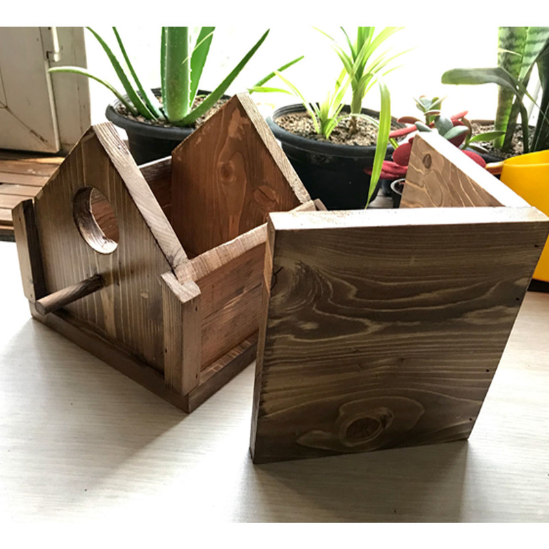 لانه پرنده کد 421 از چوب طبیعی روس وارداتی ساخته شده است، سقف لانه ثابت نشده تا براحتی به داخل لانه دسترسی داشته باشید. فرم مدرن و جنس چوب طبیعی این محصول جلوه خاصی به دکوراسیون شما می دهد.این محصول در دو رنگ کرم (رنگ طبیعی چوب) و قهوه ای موجود می باشد.