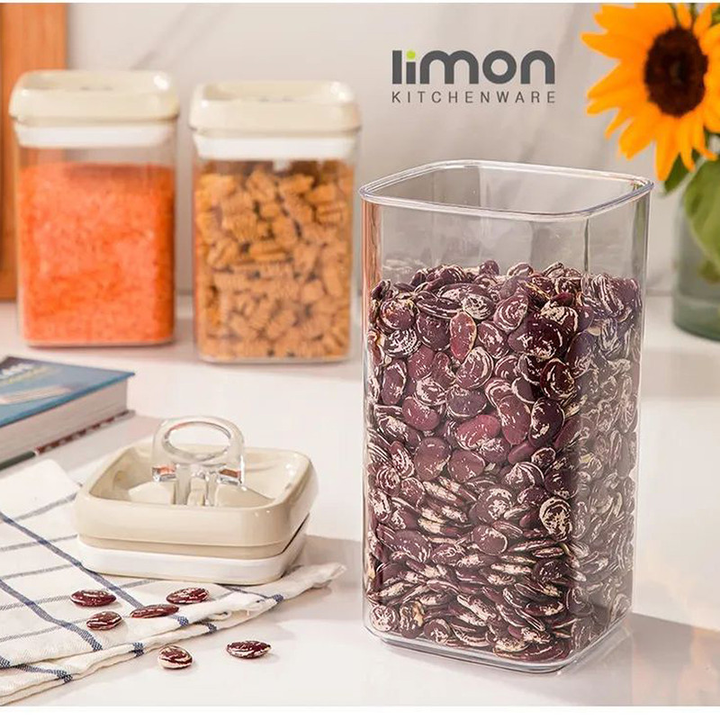 بانکه سایز بزرگ برند لیمون ، دارای درب پرسی است که باعث می شود هوا و رطوبت وارد بانکه نشود . این محصول برای مواد غذایی خشک توصیه شده است و قابلیت شستشو در ماشین ظرفشویی را نیز دارد . این محصول از مواد مناسب نگهداری مواد غذایی ساخته شده و بدنه آن نشکن است . همچنین قابلیت چیدمان آسان بر روی یکدیگر را دارد .