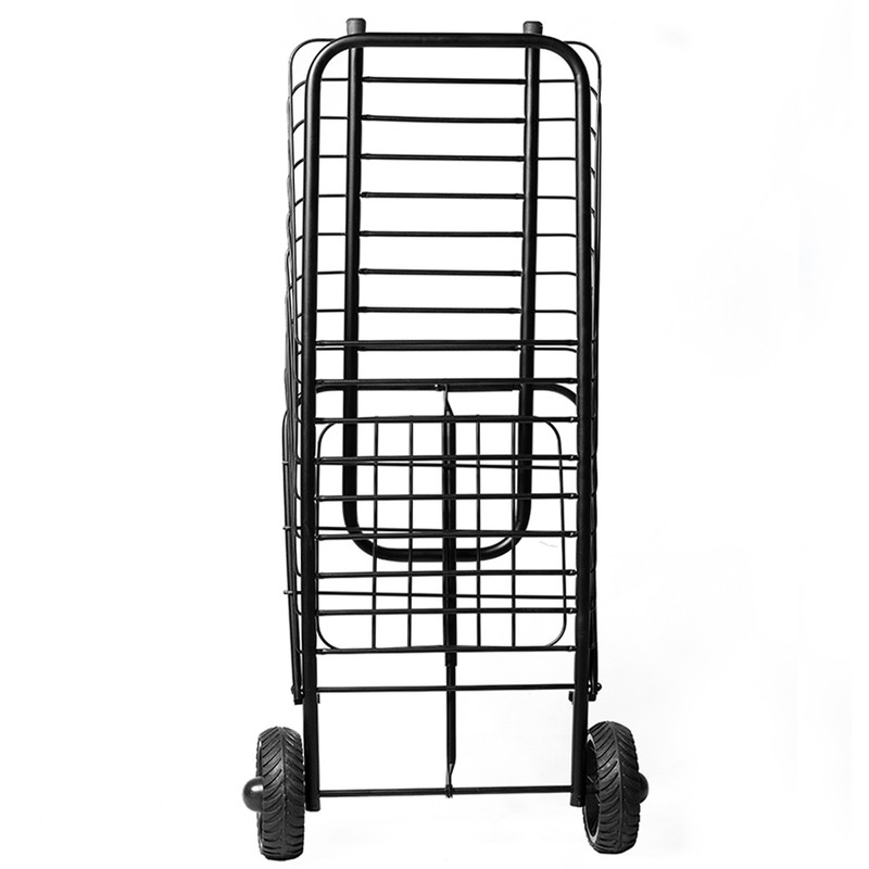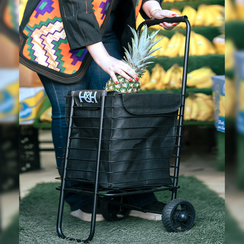 چرخ خرید تاشوی فلزی در عین زیبایی با دسته چرمی با وزن بدنه مناسب به نسبت محصولات مشابه با آلیاژ فلزی بسیار خاص و استحکام بالا تحمل وزن ۱۰۰ کیلوگرم و دارای حجم سبد ۵۰ لیتری وسیلهای مفید و کارآمد برای ساده کردن خرید و جا به جایی بارهای شما می باشد. با داشتن این محصول می توانید حجم بیشتری از خرید های خود را به راحتی و بدون سختی و فشار بدنی حمل کنید و از خرید کردن لذت ببرید.در انتخاب چرخ خرید باید به کیفیت ساخت ، مقاومت بدنه ، مقاومت کیسه مخزن و مهمتر از همه چرخ های آن دقت کرد. در تولید این چرخ خرید به موارد ذکر شده کاملا توجه شده و تمام موارد مورد نیاز به خوبی رعایت شده است. این چرخ طوری طراحی شده تا با ارگونومی مناسب کمترین فشار به بدن منتقل شود لذا حمل و نقل آن به راحتی انجام میشود. چرخ های بزرگ ، قدرتمند و روان این چرخ خرید به شما کمک میکند حتی در ناهمواری های کوچه و خیابان بدون مشکل حرکت کنید و به چرخ آسیبی وارد نشود. این محصول دارای محفظه ای با جنس برزنت مرغوب و دسته چرمی و ساخت بسیار با کیفیت است که حس بسیار خوبی را در هنگام استفاده از یک محصول با کیفیت را به کاربر القا میکند