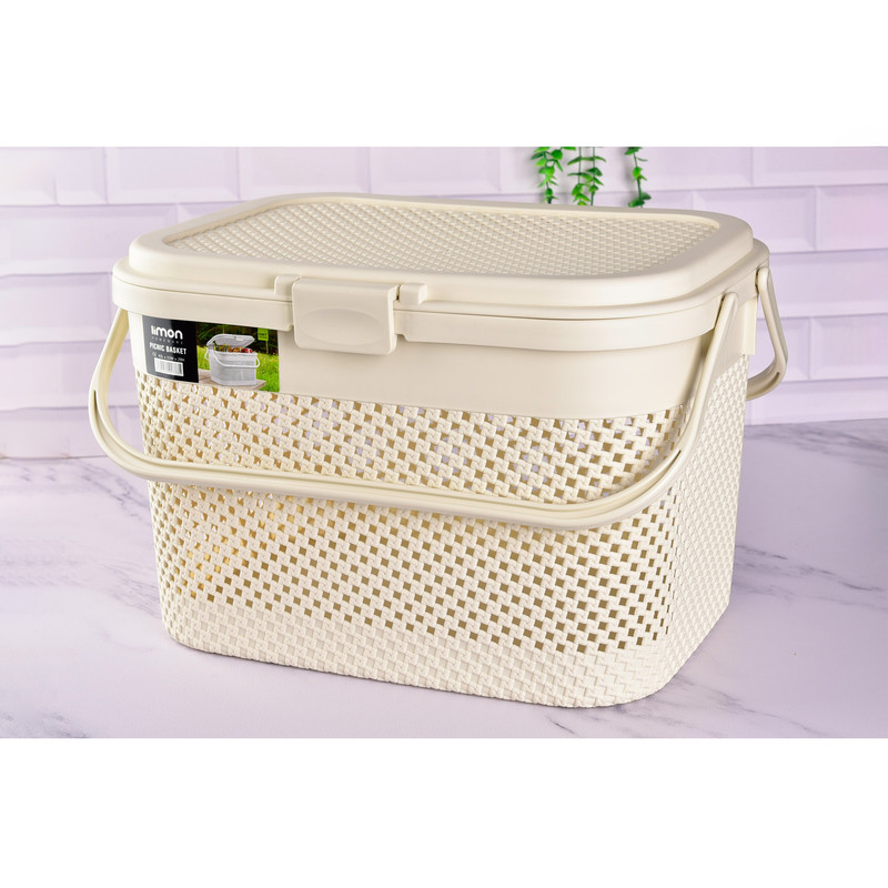سبد پیک نیک طرح بافت لیمون با طراحی منحصر به فرد، ظرفیت کافی و ساختار مستحکم، برای همه افراد دوست دار سفر مناسب می باشد.شکل مستطیلی این سبد پیک نیک نه تنها فضای زیادی را برای نگهداری اقلام در سفر فراهم می کند بلکه سبب شده تا یک انتخاب ایده آل برای نظم دادن به اسباب بازی ها ، لباس ها و سایر موارد در خانه شما باشد. همچنین می توانید از این سبد پیک نیک به عنوان سبد خرید و یا برای حمل و جابه جایی حیوانات خانگی استفاده کنید چرا که دارای منافذ زیادی برای جریان هوا می باشد.
