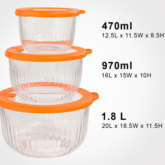 ابعاد این ظروف نگهدارنده به شرح زیر است: سایز 1 با قطر 20 و ارتفاع 11.5 سانتیمتر و ظرفیت 1.8 لیتر، سایز 2 با قطر 16 و ارتفاع 10 سانتیمتر. این ظروف دارای در فشاری برای حفظ تازگی مواد غذایی هستند و قابل استفاده در فریزر میباشند.