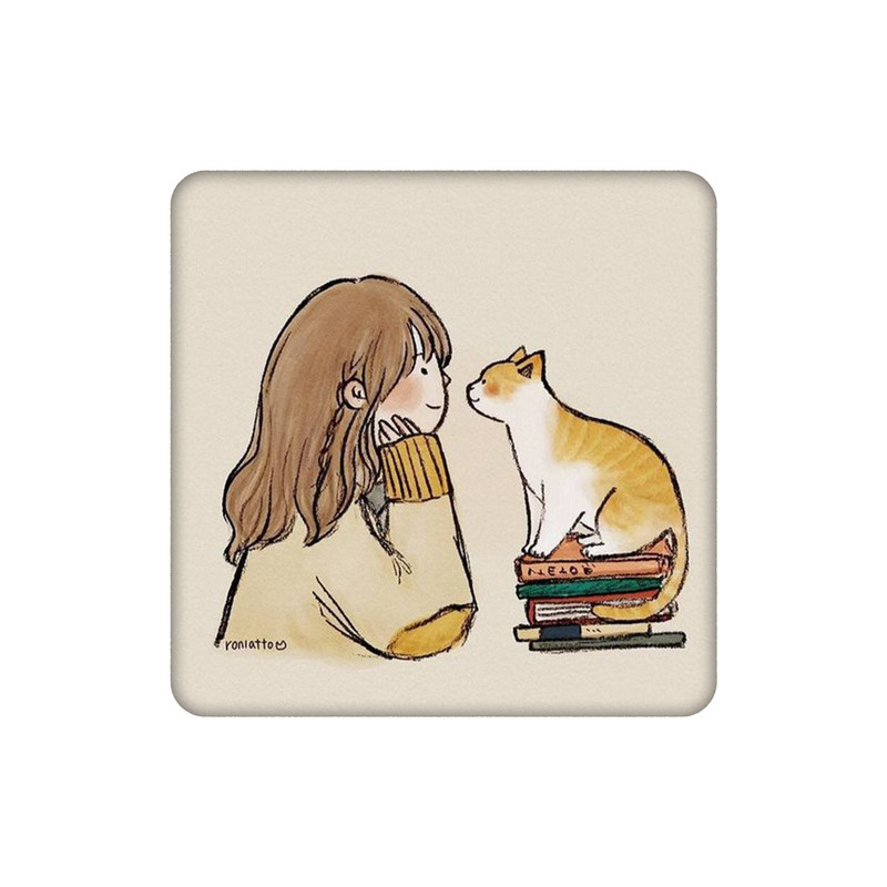 زیرلیوانی طرح دختر بچه و بچه گربه کد 2535019