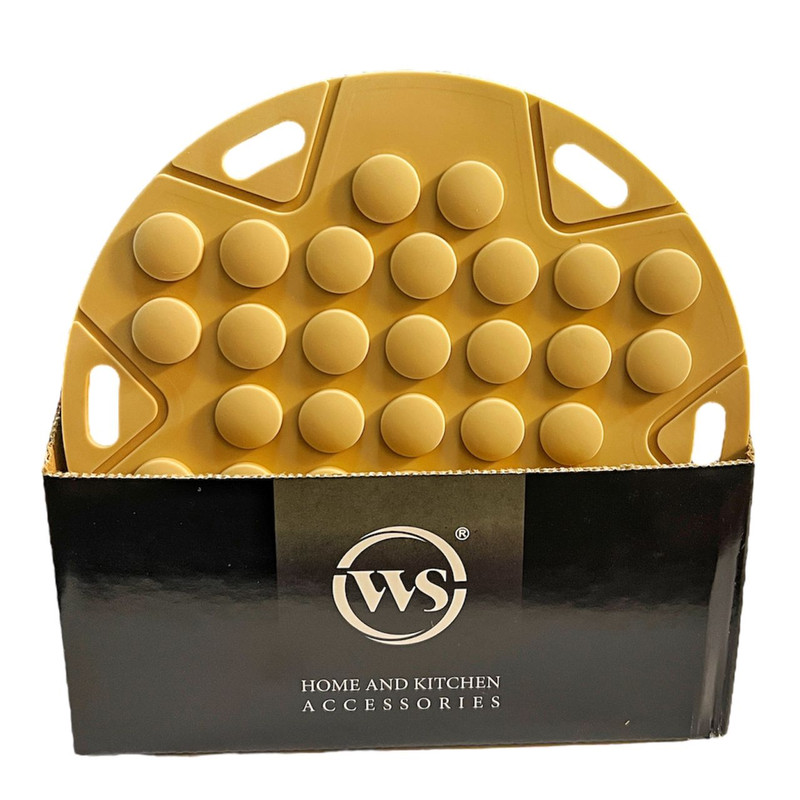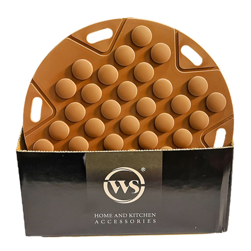 زیر قابلمه ای سیلیکونی دبلیو اس یکی از این ابزار است که وجود آن در کنار قابلمه ها ضروری است. زیر قابلمه ای ها هم در پایان طبخ و هم در زمان سرو به کار می آیند. این ابزار پرکاربرد در واقع نجات دهنده رومیزی، سفره و فرش است و مانع از سوختن آنها می شود از جنس سیلیکون بوده که مزیت آن نسبت به سایر زیرقابلمه ای ها، نسوز بودن و قابلیت تحمل دمای بالای 220 درجه سانتی گراد می باشد(به صورت غیر مستقیم). همچنین سیلیکون به علت اینکه قابل شستشو است ، به راحتی لکه ها و آلودگی های آن با شستشو از بین می رود و محیط بهداشتی آشپزخانه در کنار ظروف بهداشتی کارال حفظ شده و سلامتی خانواده ایرانی تضمین می شود.