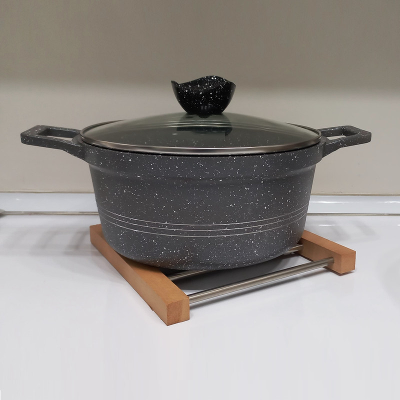 زیر قابلمه ای فوق از با کیفیت ترین و مقاوم ترین انواع چوب ساخته شده که در کنار لوله های استیلِ براق، نمای خاصی را به زیر قابلمه ای داده است. لوله های استیل از نوع ضد زنگ بوده و دوام بالایی دارد. یکی از مزایای این زیر قابلمه ای نسبت به انواع دیگر، سبک بودن، نسبت به متریال بکار رفته در آن میباشد.
