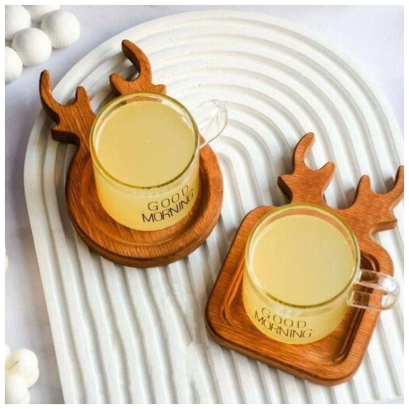 زیر لیوانی مدل مربع چوبی طرح شاخ گوزنی کد 1002
