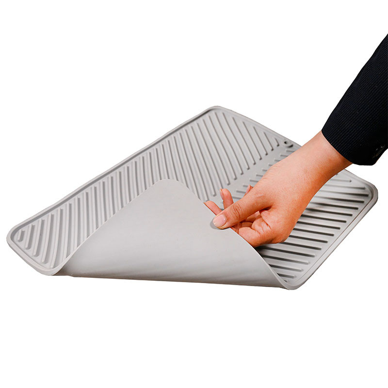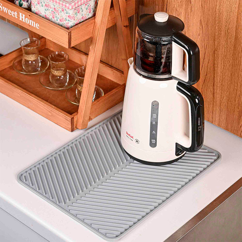 مت آبگیر سیلیکونی راهحلی هوشمند برای خشککردن ظروف و جلوگیری از پخش شدن قطرات آب روی کابینت و سینک است. طراحی شیاردار و سطح برجستهی آن باعث میشود آب بهسرعت هدایت و جمع شود تا هوا بهتر در جریان باشد و ظروف زودتر خشک شوند. جنس سیلیکونی انعطافپذیر و بادوام، علاوه بر مقاومت بالا در برابر حرارت و رطوبت، شستوشوی آسانی را فراهم میکند. این مت سبک و ضدلغزش است. انتخابی کاربردی و شیک برای هر آشپزخانهی مدرن.