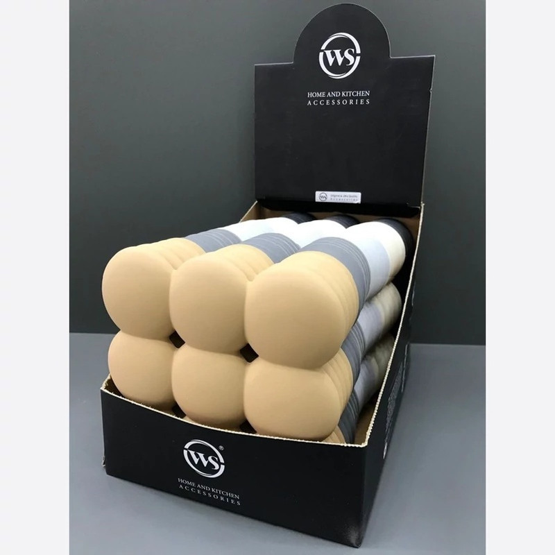 زیر قابلمه ای سیلیکونی نسوز مدل بابل WS این محصول با طراحی حباب شکل و خاص، مناسب برای زیر بشقاب، قابلمه، ظروف داغ و دکور میز غذاست. از جنس سیلیکون نسوز با کیفیت بالا ساخته شده و کاملاً قابل شستشو و ضد لغزش است.