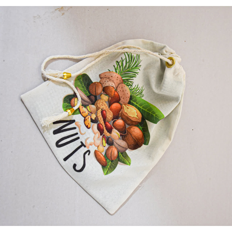 ساک و کیسه نگهداری آجیل ها که شامل گردو بادام و پسته و.... ، دارای دو لایه ، لایه بیرونی متقال 100 درصد پنبه اصفهان و آستری نخی با کیفیت عالی ، جهت نگهداری طولانی مدت مقاوم و جادار که با کمک بند های دورش جمع می شود. می توانید این محصول برای مسافرت و یخپال و نگهداری آجیل اسفاده کنید و قابل شست شو و رنگ ثابت می باشد . سایز بزرگ 30 در 25 می باشد