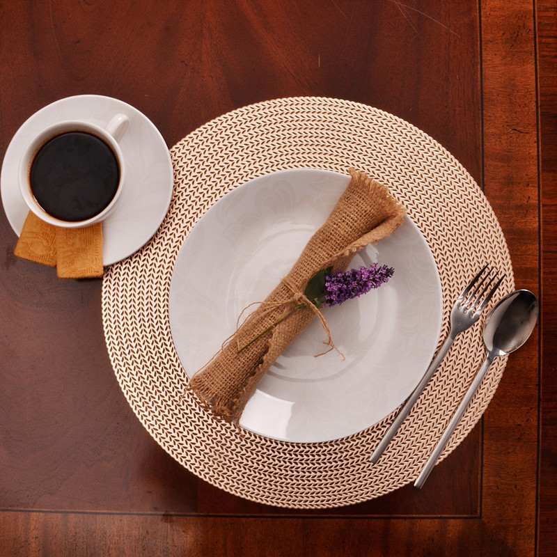 دستهبندی: زیر قابلمهای و زیربشقابیوزن: 50 گرمجنس: پلیاستر - پی وی سیفرم طراحی: دایرهتعداد تکه: دو عدد زیر بشقابیسایر توضیحات : زیر بشقابی بسته 2 عددی، قابل شستشو، محصولی کاربردی و انتخاب خوبی برای چیدمان و دیزاین های شیک و مدرن هست. مناسب برای زیر بشقاب، زیر گلدان، زیر آباژور و...ابعاد : 38x38x0.3 سانتیمترنمایش بیشتر