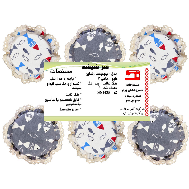سر بطری و شیشه آشپزخانه 6 پارچه منسوجات خسروشاهی برتر طرح ماهی 2 کد SSH25