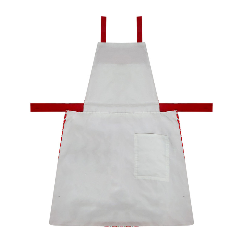 پیشبند آشپزخانه 3 لایه چین دار زیبا دارای سایز مناسب با قد 70 سانتیمتر و عرض 60 سانتیمتر بوده و به صورت دو لایه پارچه و یک لایه نایلون طراحی و تولید شده است.