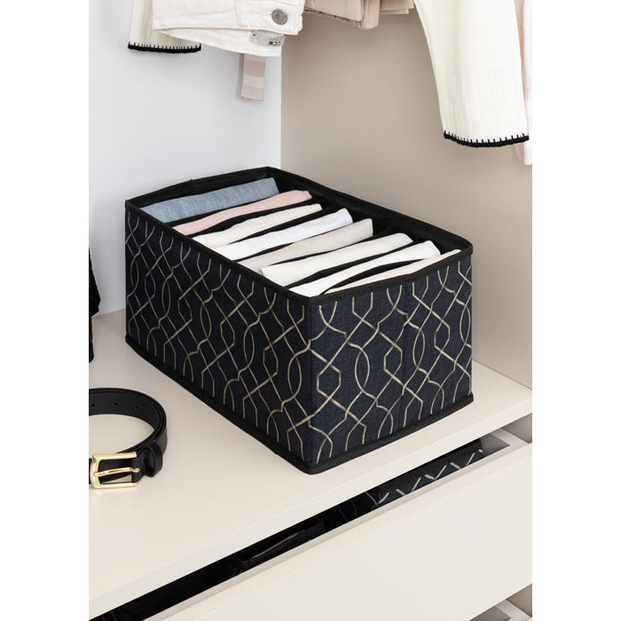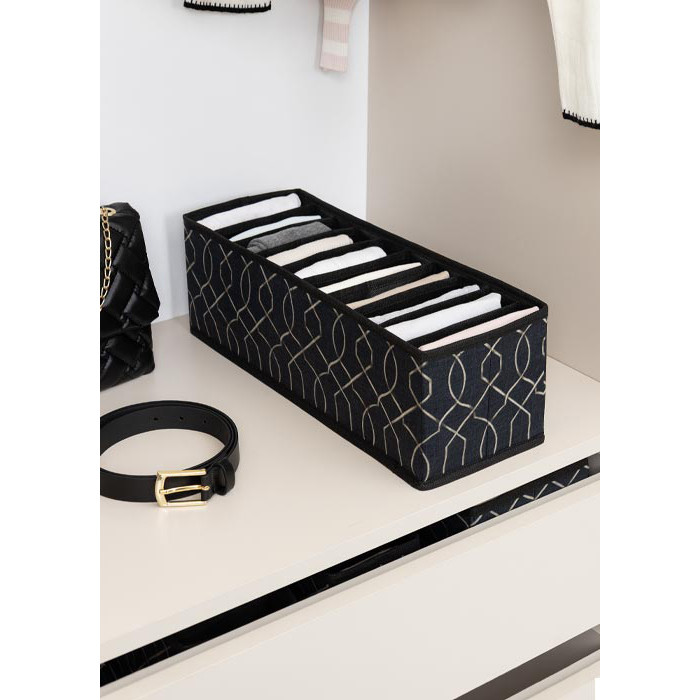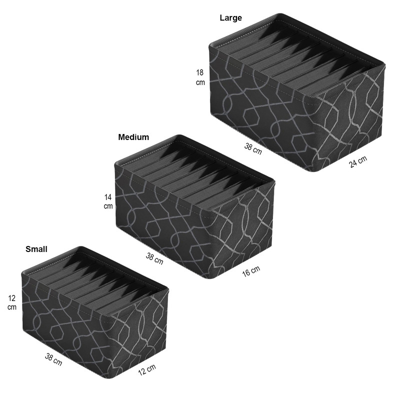 ست 5 عددی باکس نظم دهنده لیلیوم مناسب برای نظم دهی شلوار , تیشرت , لباس زیر , شال ,جوراب و غیره قابل استفاده در کشو و کمد می باشد. این ارگانایزر 5 عددی ترکیه ای دارای یک باکس درب دار 12 خانه+یک خانه بزرگ و در ابعاد کلی 43*28*12 و یک باکس درب دار 16 خانه در ابعاد 28*28*12 و سه باکس در سایز مختلف اسمال دارای 10 خانه در ابعاد 38x12x12 سانتیمتر و سایز مدیوم دارای 9 خانه در ابعاد 38x16x14 سانتیمتر و سایز لارج دارای 8 خانه در ابعاد 38x24x18 سانتیمتر می باشد. دیواره های این کالا ها 3 لایه از جنس مقوایی بسیار محکم با پوشش پارچه است و ایستایی کاملی دارد.