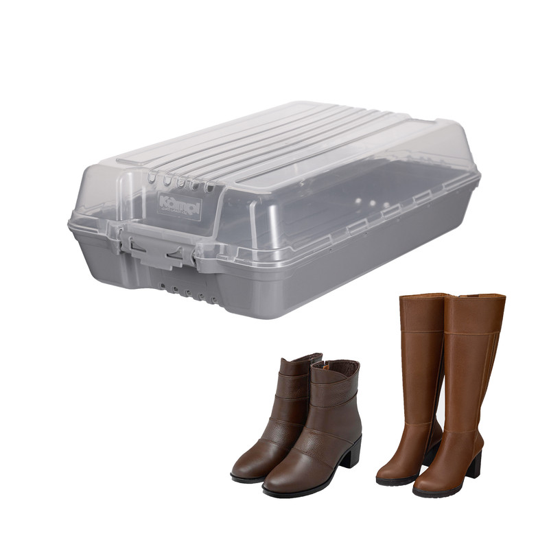 این محصول با وزن سبک و کارامد برای نظم دادن به کفشها بسیار مناسب است در ضمن کفش وقتی در یک باکس در بسته قرار بگیرد مورد فشار قرار نمیگیرد و بافت کفش سالم میماند و همچنین کفشها وقتی در مجاورت هوا نباشد دیرتر ترک میخورد و کمتر احتیاج به واکس و نرم کننده پیدا میکند . سایز سوپر باکس کفش کامل کاملا مناسب برای نگهداری انواع بوت و نیم بوت و چکمه های بلند و کفشهای کوهنوردی میباشد.