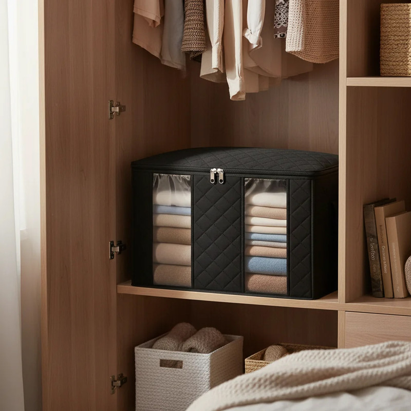 این بسته شامل 1 عدد باکس و 1 عدد آویز 3 خانه است. باکس نظم دهنده ارگانو از جنس پارچه ضخیم و طلق شفاف ساخته شده که بتوانید محتویات داخل باکس را مشاهده کنید.طول این محصول 60 عرض 40 و ارتفاع 35 سانتیمتر است.همچنین دارای درب زیپ دار جهت جلوگیری از نفوذ گرد وغبار و حشرات می باشد که قابلیت شستشو با دست و ماشین لباسشویی را دارد.