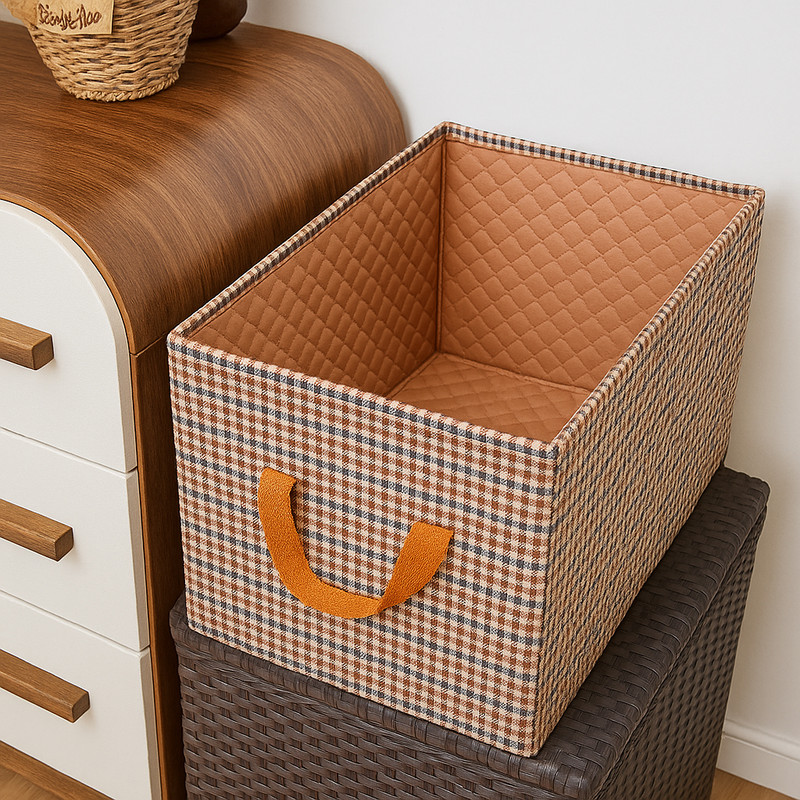 این بسته شامل 2 عدد باکس و 1 عدد نظم دهنده 3 خانه است.باکس استند دار ارگانو با پارچه 3 لایه در ابعاد 40x25x25 سانتیمتر که با توجه به داشتن میله فلزی آبکاری شده ضخیم در زمانی که نظم دهنده به صورت کامل پر نباشد همچنان شکل ظاهری آن را به خوبی حفظ میکند.