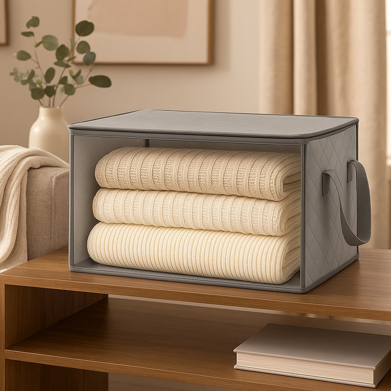 این بسته شامل 4 باکس نظم دهنده و 2 آویز 3 خانه می باشد.باکس نظم دهنده لباس و پتو ارگانو از جنس پارچه پلی استر و طلق شفاف تولید شده که بتوانید محتویات داخل باکس را مشاهده کنید.طول این محصول 60 عرض 40 و ارتفاع 35 سانتیمتر است.همچنین دارای درب زیپ دار جهت جلوگیری از نفوذ گرد وغبار و حشرات می باشد که قابلیت شستشو با دست و ماشین لباسشویی را نیز دارد.