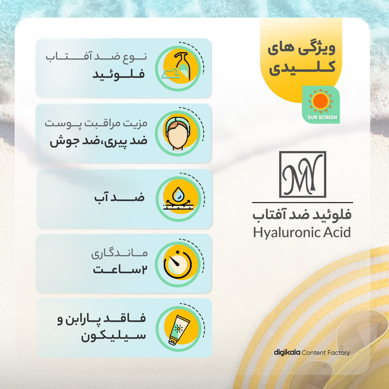 ویژگیهای ضدآفتاب : ضد آب , محافظت کننده در برابر اشعه UVA , محافظت کننده در برابر اشعه UVB , فاقد پارابن , فاقد سیلیکون