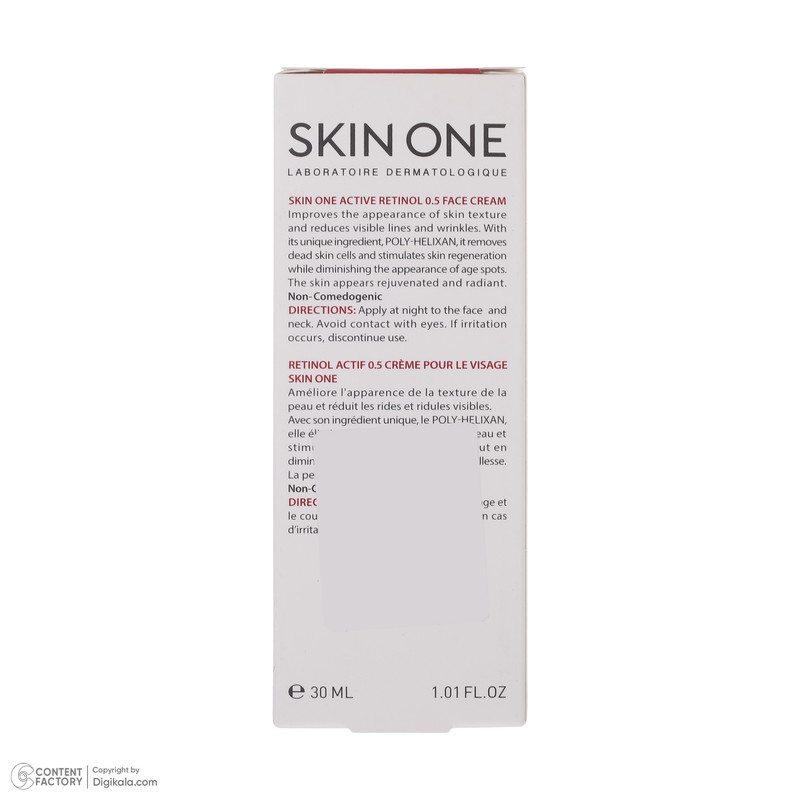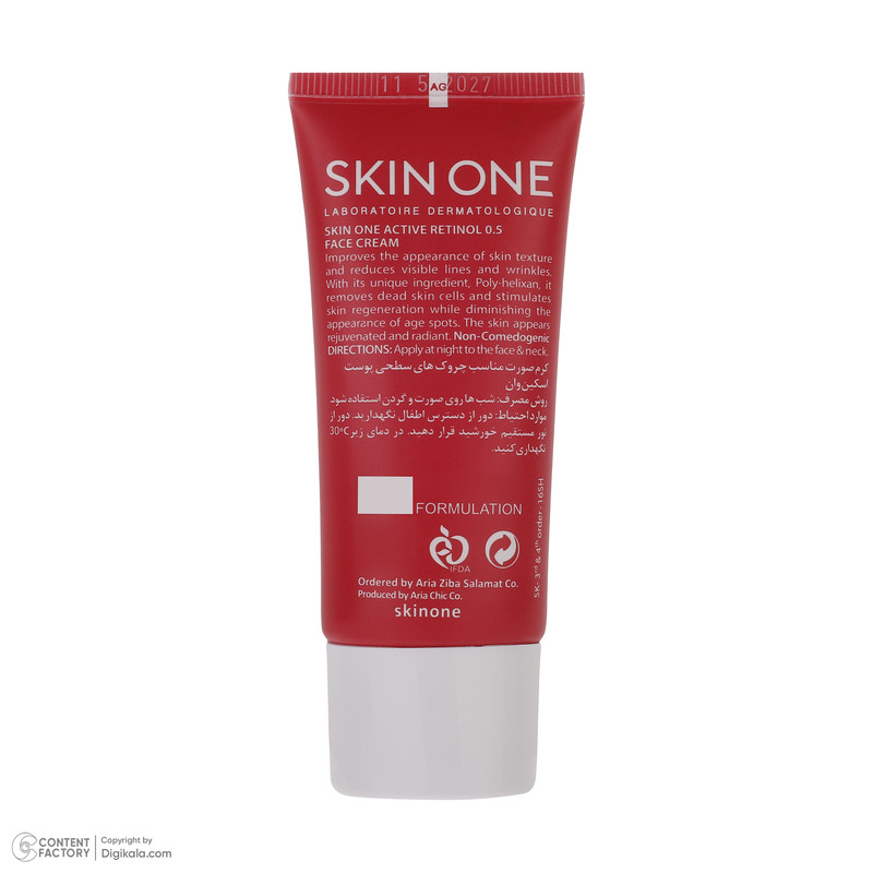 کرم ضد چروک صورت اکتیو رتینول 0.5 اسکین وارن، سفت کننده و بازسازی کننده پوست بوده و باعث لايهبرداری و شفافيت پوست شما میشود. کرم ضد چروک اکتیو رتینول SKIN ONE، مناسب کاهش چروکهای سطحی و قابل رویت پوست است. این کرم بواسطه ترکیبات منحصر به فرد خود، سبب بهبود ساختار پوست و حذف سلولهای مرده میگردد. همچنین این محصول با بازسازی پوست، سبب کاهش ایجاد لکهای ناشی از بالا رفتن سن شده و پوستی جوان و شفاف را به ارمغان میآورد. رتینول یکی از ترکیبات این محصول است که از مشتقات ویتامین A بوده و یکی از موثرترین ترکیبات در رفع چروکها، افزایش میزان کلاژن و بازسازی طبیعی سلولی در اپیدرم است. همچنین با اثر لایهبرداری سبب کاهش لکها میشود. از طرفی ترمیم کننده و محافظ کننده پوست در برابر آسیبهای متعدد نیز است. لازم به ذکر است کرم ضد چروک Active Retinol 0.5 اسکین وان، غیرکمدونزا و مناسب انواع پوست میباشد. کرم ضد چروک اسکین وان ساخت ایران است و دارای فرمولاسیون فرانسوی میباشد.