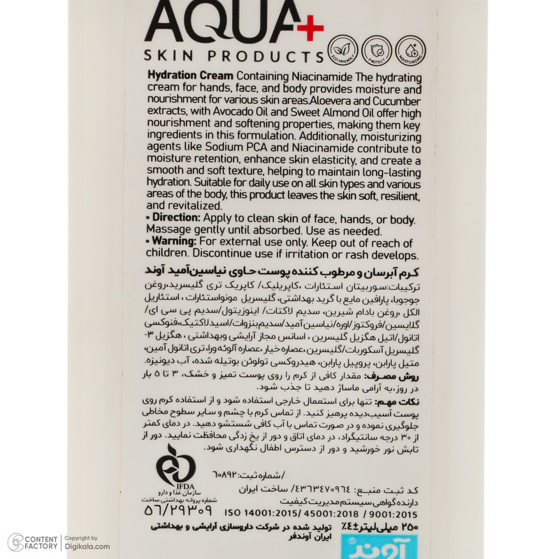 سایر توضیحات : آبرسانی عمیق پوست، نرم کننده، رفع خشکی پوست، رفع التهاب