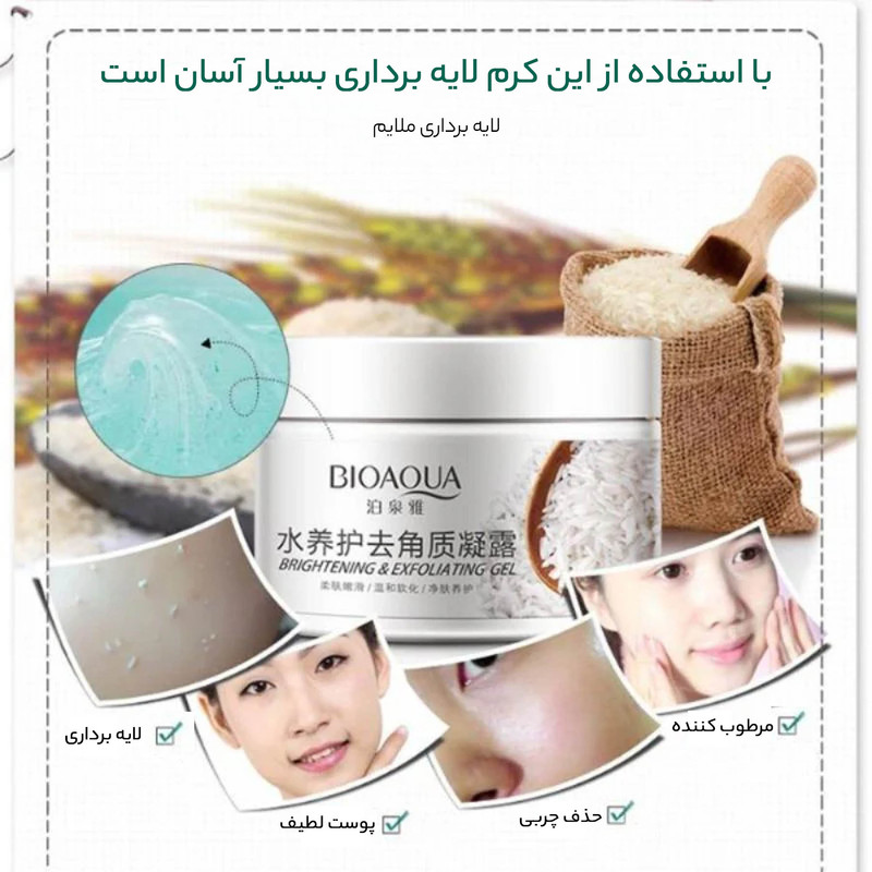 ماسک صورت بایو آکو مدل لایه بردار برنج وزن 140 گرم