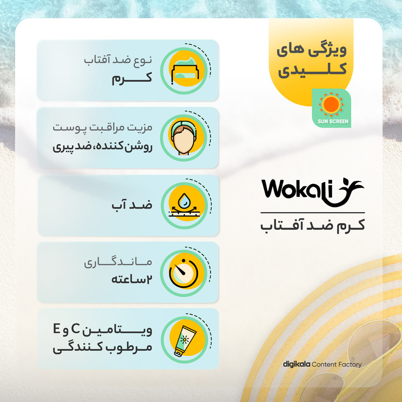 کرم ضد آفتاب وکالی از مواد معدنی و جلبک های دریایی و مواد آلی کاملا طبیعی و ارگانیک ساخته شده است که سرشار از ویتامین ها و مواد کلاژن ساز پوست می باشد که شادابی و طراوت پوست را به همراه دارد و نقش به سزایی در ترمیم بافت های آسیب دیده پوست دارد و با کلاژن سازی طبیعی آسیب های پوست را بهبود بخشیده و از بین می برد. ویتامین های موجود در این ضد آفتاب سبب شادابی و تقویت و تغذیه پوست خواهد شد و تمام لک و جای جوش و زخم های قدیمی را هم از بین می برد.