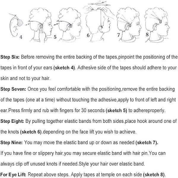 روش استفاده: پوست را با الکل و یا پاکننده بدون چربی پاک کنید و چسب را بر روی نواحی که قصد لیفت دارید بچسبانید و کش ها را با توجه به فاصله دو چسب انتخاب و وصل کنید.