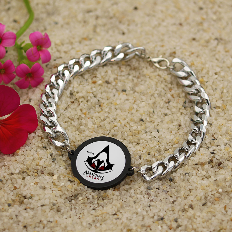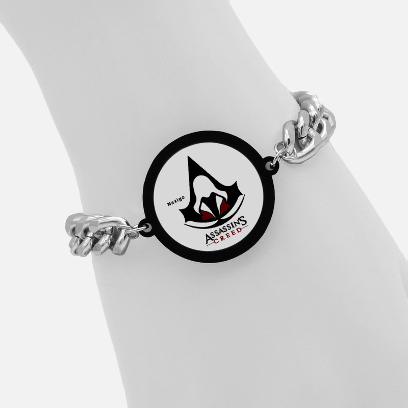 دستبند به عنوان یک اکسسوری جذاب و زیبا برای تمام افراد و تمام سنین به شمار می آید. دستبند ناکسیگو طرح Assassins Creed ساخته شده از جنس زنجیر استیل و پلاک اکریلیک است. کاملا ضد حساسیت بوده و رنگ ثابت دارد. طول دستبند 20 سانتی متر است و قطر آویز حدودا 3 سانتی متر می باشد. محصول با بسته بندی شیک و مناسب جهت هدیه ارائه می شود.