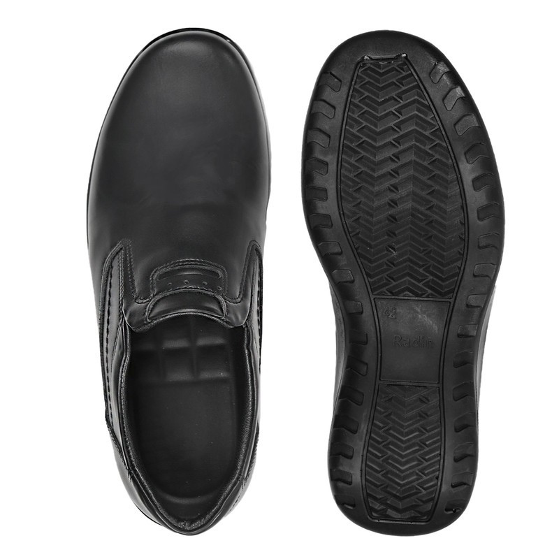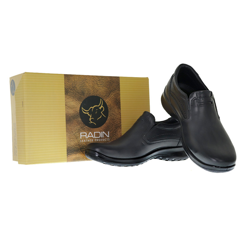 این کفش از برند رادین و کاملا از جنس چرم طبیعی است . کفی از جنس پلی اورتان (پی یو ) تزریقی می باشد .این کفش با توجه به انعطاف زیره برای استفاده رورمره و طولانی مدت مناسب است و چون از جنس چرم طبیعی است گردش هوای مناسب برای پاها که قلب دوم ما و دارای اهمیت بالایی هستند فراهم میشود . این مدل از کفش های برند رادین دارای قالب بندی با سایز بزرگ است همچنین این نکته حایز اهمیت است که کفی طبی موجود داخل کفش به آن نچسبیده و میتوان آنها را حتی با ماشین لباسشویی شستشو نمود.