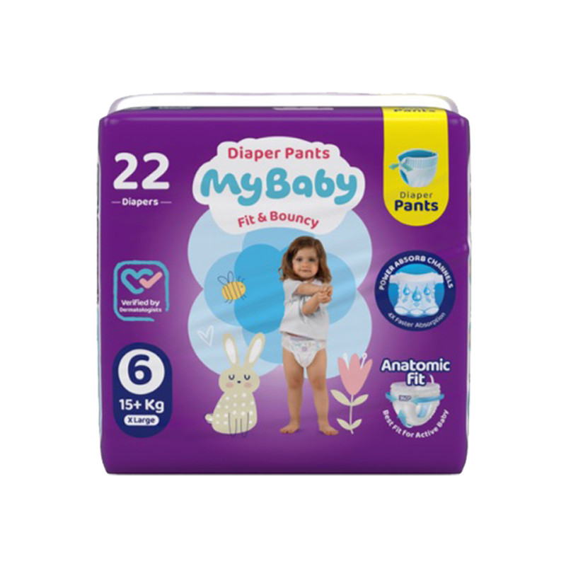 پوشک شورتی مای بیبی مدل کانال دار سایز 6 دو بسته 22 عددی
