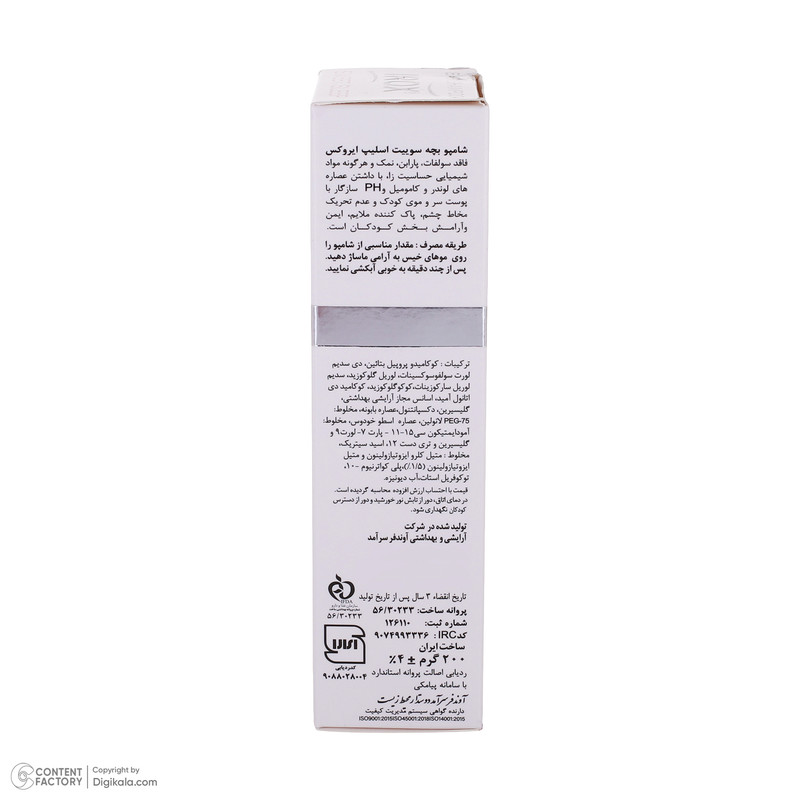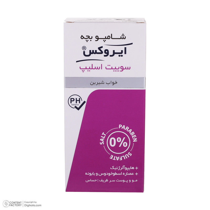 شامپو بچه ایروکس(سوئیت اسلیپ) از موهای نرم و نازک کودک محافظت کرده و موجب افزایش رطوبت و درخشندگی موی کودک میگردد. شامپو بچه ایروکس(سوئیت اسلیپ) به دلیل عدم استفاده از سولفات، پارابن، نمک و هرگونه مواد شیمیایی حساسیتزا موجب تحریک و سوزش چشم کودک نمیگردد. شامپو بچه ایروکس(سوئیت اسلیپ) با استفاده از عصارههای گیاهی مانند اطوخودوس و بابونه و لوندر خواص بسیار زیادی برای پوست و موی کودک دارد.