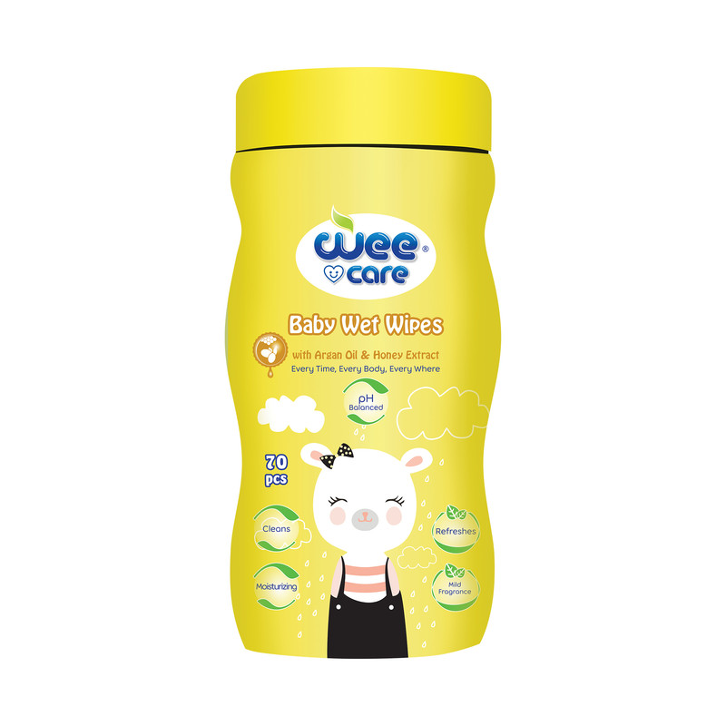 دستمال مرطوب کودک وی کر مدل عصاره عسل و روغن آرگان سیلندری بسته 70 عددی