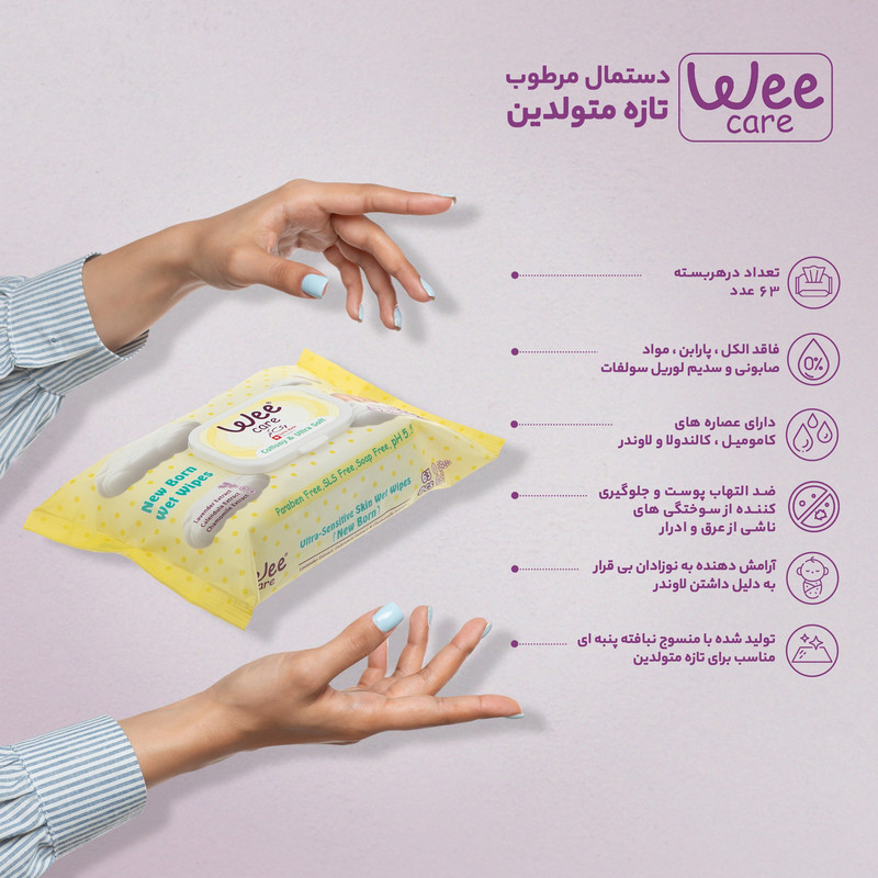 دستمال مرطوب کودک وی کر مدل sensitive skin بسته 63 عددی