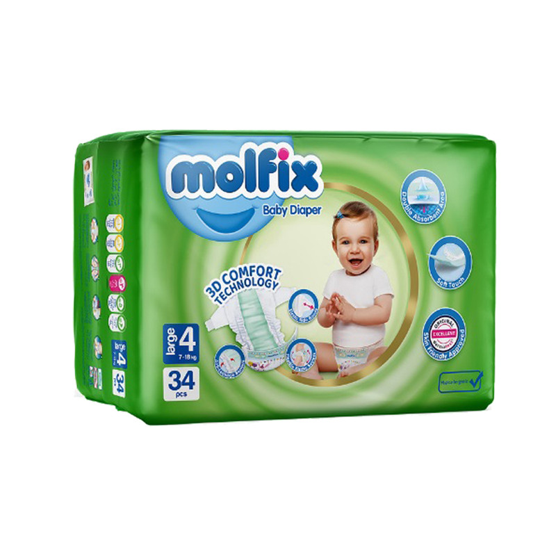 پوشک بچه مولفیکس مدل سه بعدی سایز ۴ دو بسته ۳۴ عددی