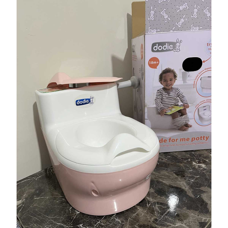 لگن آموزشی کودک طرح توالت فرنگی Doodie یک محصول مناسب برای آموزش دستشویی رفتن به کودک لوازم و محصولاتی که برای دستشویی رفتن کودکان تولید می شود، به شما کمک می کند تا این دوران مهم را با راحتی بیشتری سپری کنید. تمام تلاش تان را به کار گیرید تا در دوران از پوشک گرفتن و آموزش دستشویی رفتن به کودک خود، آرامش داشته باشید. هر قدر این دوران بدون استرس و نگرانی سپری شود، به موفقیت و استقلال کودک زودتر نزدیک می شوید.