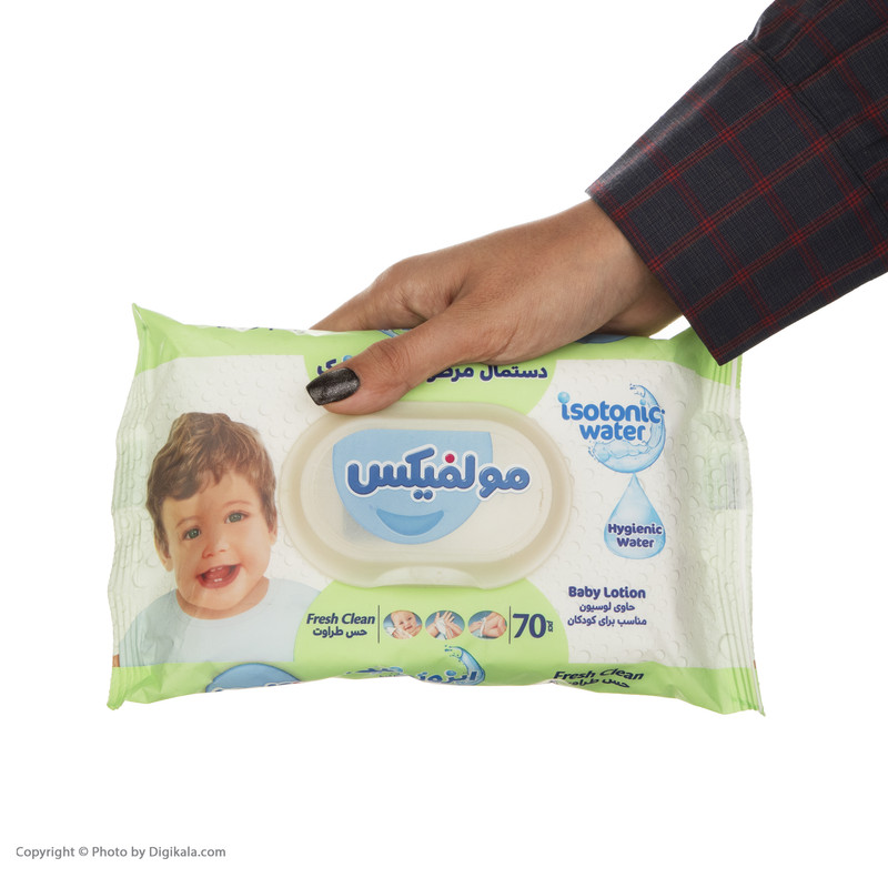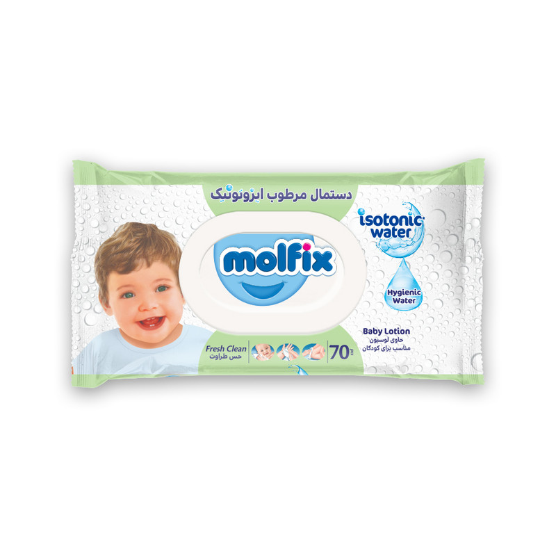 دستمال مرطوب کودک مولفیکس مدل ایزوتونیک بسته 70 عددی