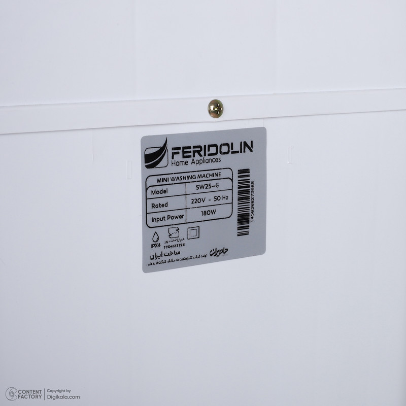 دستگاه «فریدولین» (Feridolin) مدل «SW25-G» یکی از مینیواشهای کاربردی عرضهشده به بازار توسط این شرکت است که از طراحی ظاهری آراستهای برخوردار است. جنس بدنه از پلاستیک است و فریم ABS ضد خط و خش دارد. این دستگاه از دسته مینیواش های در از بالا است که ظرفیت شستن 2.5 کیلوگرم لباس را دارد. این محصول مناسب برای شستوشوی انواع لباس نوزاد و کودک میباشد. طراحی جدید این محصول با درب شیشهای آن را به یک محصول زیبا و خاص تبدیل کرده است. در قسمت بالای این ماشین لباسشویی و در کنار در آن، دکمههای پیچی ولومی با کاربری آسان جهت تغییر تنظیمات بهصورت دستی در نظر گرفته شدهاند. این دکمهها امکان تنظیم زمان شستوشو از 3 تا 15 دقیقه و همچنین امکان تنظیم برنامه شستوشو را در سه حالت مختلف به کاربر میدهند. از دیگر ویژگیهای این دستگاه وجود رله حرارتی است که از سوختن موتور آن جلوگیری میکند. همچنین این مدل دارای پروانه حبابساز و فیلتر پرزگیر است که موجب بهبود عملکرد و بهرهوری دستگاه میشوند. در نظر داشته باشید که فریدولین، یک شرکت تولیدی صنعتی ایرانی است که بیش از 35 سال سابقه دارد. فعالیت اصلی فریدولین، در زمینهی تولید مینیواش و ماشینهای لباسشویی نیمهخودکار و خودکار در طرحها و مدلهای متنوع است. از ویژگیهای محصولات این شرکت میتوان به استفاده از فناوری روز در تولیدات، صرفهجویی در مصرف آب و مواد شوینده و کاهش زمان شستشوی لباسها اشاره کرد.
