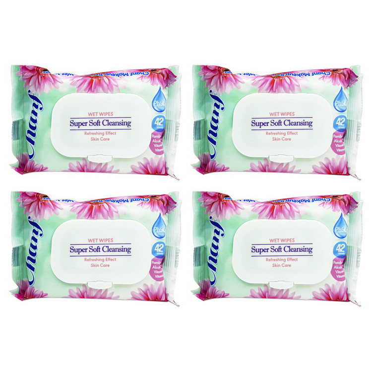 سایر مشخصاتدستمال مرطوب پاک کننده آرایش چانف بسته 42 برگی مجموعه 4 عددی سازگار با انواع پوست پاک کنندگی عالی معطر و ضد عفونی کننده