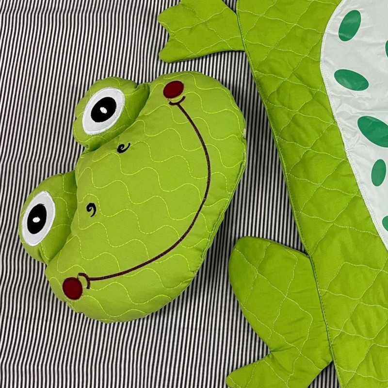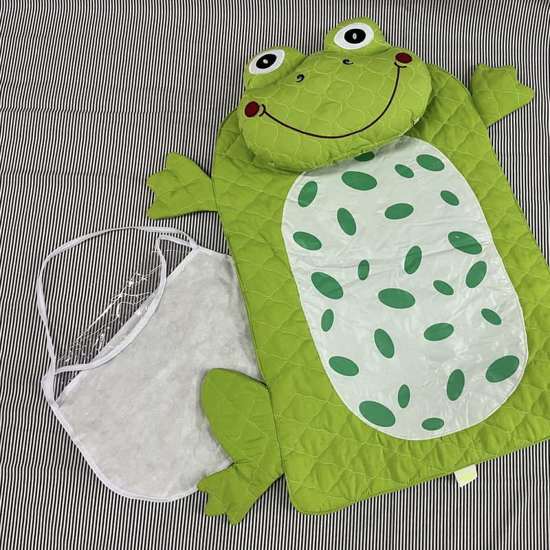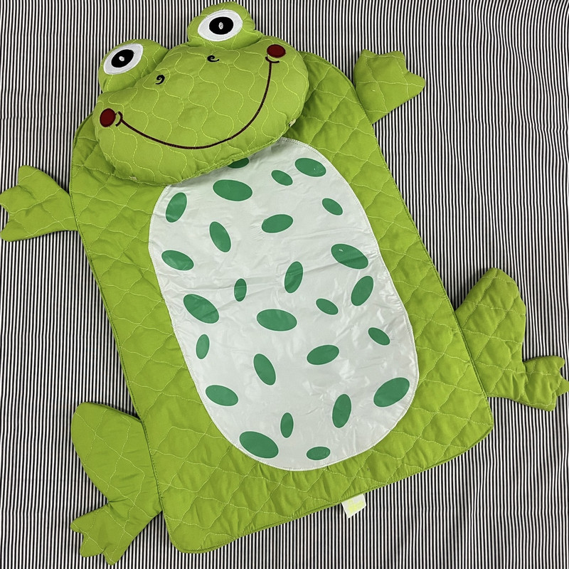 زیرانداز تعویض نوزادی طرح قورباغه جنس پارچه تترون مرغوب پنبه دوزی شده میباشد.تک رنگ سبز هست.دارای بالش طرح سر قورباغه است که با چسب به تشک وصل میشود و قابلیت جداشدن دارد.پشت بالش دو عدد کش دارد که به عنوان بالش شیردهی هم قابل استفاده است.