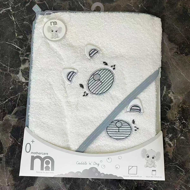 استفاده از رینگ نخ پنپه بدون پرز و و بدونه ایجاد حساسیت با قدرت ابکشی مناسب و گلدوزی با نخ ابریشم و نخه لمه mother care باز هم ثابت کرد که حتی برندهای مطرح ترکیه در تولید حوله سیسمونی یک سر گردن پایینتر از این برند قدیمی و با اعتبار هستن،می توان گفت این حوله در بازار بالاترین کیفیت را در بین همه ی حوله های نوزاد به دوش می کشد، یکی از مهمترین موارد در مراقبت از پوست کودک شستوشو منظم است. حمام کردن به صورت روزمره و درصورت امکان در زمان معینی از روز به کودک احساس آرامش و طراوات میدهد. برای نوزادانی که از پوشک استفاده میشود برای جلوگیری از ایجاد قرمزی و در اصطلاح عامیانه سوختگی پوست کودک میبایست بدن نوزاد را روزانه و به صورت موضعی شستوشو داد. حوله نوزادی از جمله لوازم ضروری برای خشک کردن و جذب رطوبت بدن نوزاد هستند. از آنجایی که حوله تماس مستقیمی با پوست لطیف نوزاد دارد، بایستی جنس پنبهای نرمی داشته تا برای پوست نوزاد هیچگونه حساسیتی نداشته باشد. همچنین جذب آب بالا از جمله فاکتورهای مهم دیگری است که باید در هنگام خرید حوله به آن دقت داشت. معمولا حولهها با رشته های مرغوب کوتاه، جذب آب بالاتری داشته و همچنین زمان کمتری برای خشکشدن نیاز دارند. بهطور کلی تا یکسالگی نوزاد نیاز به حوله دورپیچی دارید که کلاه سهگوش داشته باشد. ست حوله نوزادی برند معروف و نام آشنای «mothercare»، شامل دو تکه حوله و لیف است. حوله این ست، دورپیچ بوده و دارای یک کلاه سهگوش است که روی آن طرح فانتزی cute cat دوخته شده است. این ست جنس پنبهای فوقالعاده نرمی داشته و بهخوبی آب را به خود جذب میکند. بهتر است برای شستوشو این ست از دمای 40 درجه سانتیگراد آب استفاده کنید.