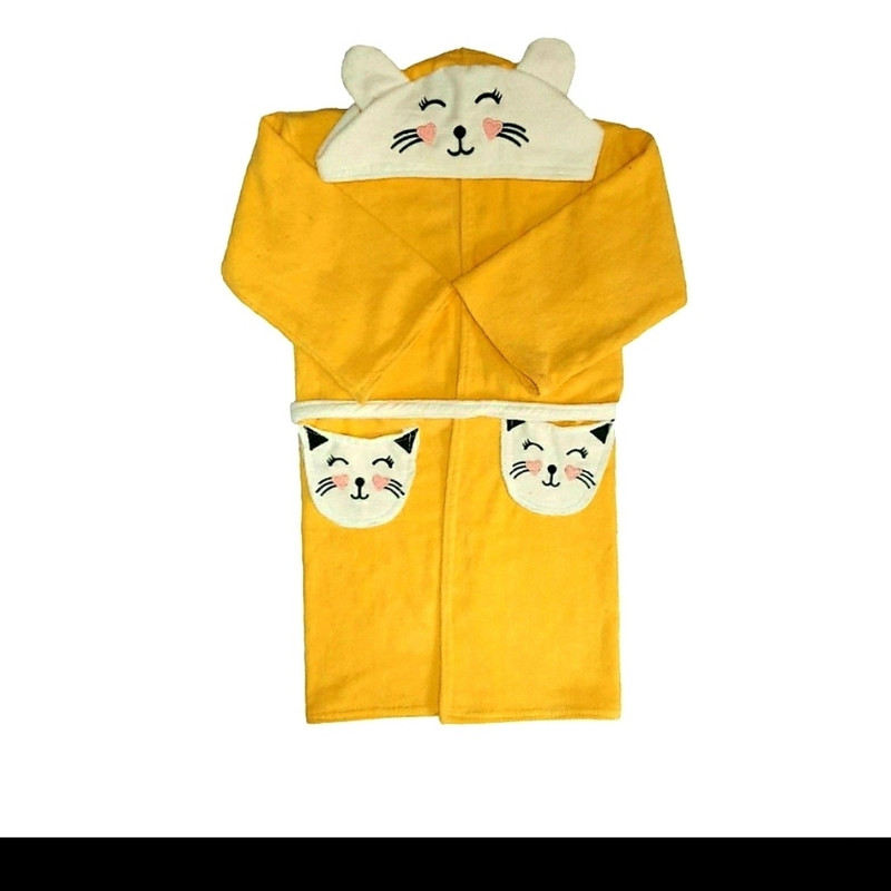 سایر توضیحات: حوله پالتویی کودک مدل گربه ملوس سایز80 قدکاراز سرشانه تا پایین 80سانتی متر می باشد که دارای کلاه چسبیده و جیب خارجی وکمربندعرضه میشود جنس کار صددرصد نخ پنبه میباشد مناسب کودک 5الی8سال می باشد فروش بدون واسطه و بصورت مستقیم از کارگاه حوله بافی هنرمند