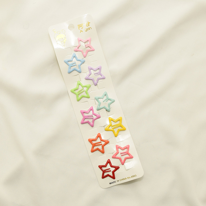 گیره مو دخترانه مدل تق تقی ستاره ای پاستیلی بسته 10 عددی